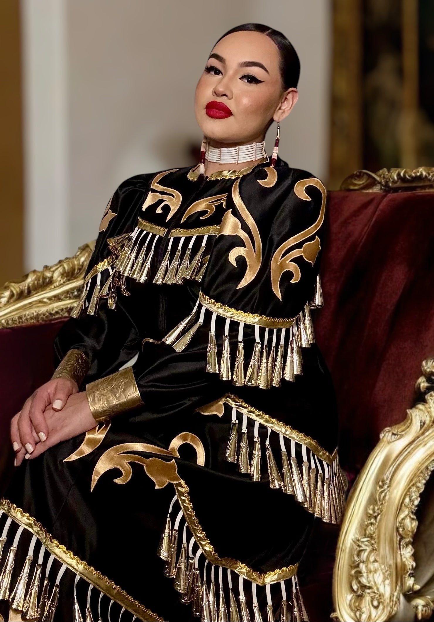 Boozhoo! I'm Aerius Benton-Banai, the heart behind House of Jingle Dresses. I come from Lac Courte Oreilles Ojibwe tribe and I am bullhead fish clan. From my first jingle dress at 17 to the intricate designs today, my journey is a tribute to the incredible people in my life, past, present, and future as well as my ancestors who paved the way for me generations ago.